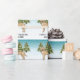 A ilustração original do desenho animado de Destei de um cachorro da raça Labrador Retriever, amarelo fofo. O cão é colocado numa cena de inverno com três árvores de abeto verde. O fundo é um gradiente azul a branco que dá à design aquele olhar frio do dia de inverno. Há uma área de texto personalizável que agora diz: "Feliz Natal!" junto com um nome personalizado.