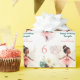 Papel de embrulho personalizado para uma menina Aniversário, com a pequena bailarina mais bonita com pele escura e cabelo, balões e flores em tons suaves de rosa, chalé e creme sobre fundo branco. Personalize facilmente o texto e o número do Aniversário. - Kate Eden Art