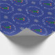 O texto deste papel de embalagem com tema desportivo é branco e pode ser editado para a sua saudação preferida, ou simplesmente utilizar o texto fornecido: "FELIZ ANO NOVO DE NATAL MERRY". O design mostra um piripgrama (em verde de natal) vestindo um chapéu de santa e carregando uma parcela festiva. O fundo é marinho, e também há flocos de neve ouro.