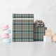 Embrulhar com o tartan de caça para Clan Thompson e suas sebes, incluindo Taish e Thomasson. Padrão de xadrez escocês castanho-claro, azul-ciano e preto a partir de 1958, com sotaques verdes brilhantes.