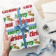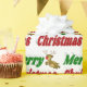 Esfregando papel com Feliz Natal em texto verde e vermelho 3D e uma rena. Disponível em vários estilos e tamanhos.