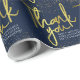 Um lindo papel de embrulho de agradecimento. Este papel de presente fabuloso apresenta tipografia com efeito dourado em um fundo azul com confetes dourados. Fácil de personalizar com sua própria mensagem de agradecimento, se necessário.