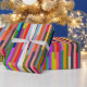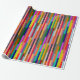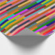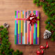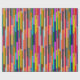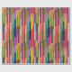 Este papel de embrulho tem um design geométrico de listras coloridas que funcionam verticalmente.