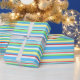 Papel de enrolamento com um design striped em azul, verde, amarelo, branco e vermelho. Excelente para todas as ocasiões.