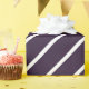 Este papel de embalagem listrado tem listras roxas escuras e brancas. As faixas diagonais constituem o padrão simples.