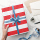 Papel De Presente Tiras Horizontais Clássicas Vermelhas e Brancas