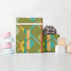 Este papel de embrulho tem uma design moderna do século médio de retângulos verdes arredondados com orifícios sobre um fundo de listras em cores modernas do século médio. Se você gosta do design, mas prefere cores diferentes, me mande mensagem.
