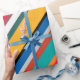 Este papel de embrulho tem um design de faixas diagonais em cores modernas do século Médio.