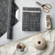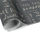 Feliz tudo! Compartilhe TODOS os desejos de feriado com este único papel de embrulho com seu nome familiar em um padrão repetitivo de Feliz Natal, Esta é a temporada, Feliz Férias e Paz na Terra em um rico fundo de carvão.