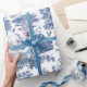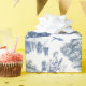 Um padrão de toalha azul com jovens homens e mulheres trabalhando e relaxando na floresta para a decoração rústica do país.