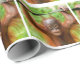 Meet the adorable baby orangutan with arms raised high, holding a rope and showing pure joy. His bright orange fur glows against a vivid green background, capturing the playful spirit and irresistible charm of these incredible great apes