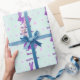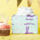Este papel de embrulho de Páscoa giro apresenta um coelho roxo do Coelho da Páscoa e flores rosadas da margarida. Personalize-o com um nome.