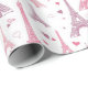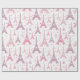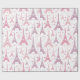 Torres Eiffel ilustradas em rosa e roxo com corações desenhados à mão num padrão repetitivo.