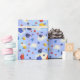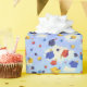 Bonés de formatura coloridos são jogados no ar e mostrados contra um céu azul com nuvens fofinhas. Perfeito para embrulhar presentes de graduação!