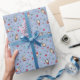 Papel De Presente Tossed Gnomes Wrapped in Lights on Light Blue