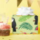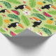 Padrão ininterrupto de verão colorido com tucanos engraçados, melancias suculentas, abacaxis, flores tropicais e deliciosos cocos jovens.