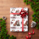 O padrão repetido neste belo papel de embrulho de Natal é uma imagem de um Cão-Touro-Touro marrom e branco vestindo um chapéu de Papai Noel vermelho e branco, com um travesseiro de xadrez de búfalo preto e vermelho atrás dele, e um pacote de presente de coordenação com uma fita de ouro ao seu lado. Há também um arco de xadrez de búfalos e o texto correspondente que diz "JOY". O texto de xadrez de búfalos vermelho e preto estilizado diz MERRY CHRISTMAS", e sua própria assinatura está em dois campos para você personalizar.