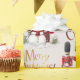Soldado britânico Brinquedo com um chapéu de pele de barba com um bonitão de neve e um Feliz Natal saudando o texto em ouro