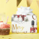 Soldado britânico Brinquedo com um chapéu de pele de barba com um bonitão de neve e um Feliz Natal saudando o texto em ouro