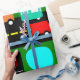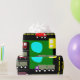 Isto tem um design geométrico de caminhões e carros em uma estrada e em um estacionamento. Perfeito para seus aniversários.