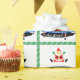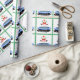 Creative Christmas trampoline gymnastics holiday gift wrap featuring funny Santa Claus jumping on a trampoline. To personalize edit test to add name.