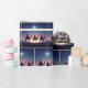 Silhuetado contra um céu noturno estrelado são três homens sábios viajando em direção a uma estrela brilhante