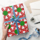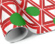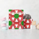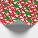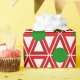 Este papel de embrulho tem um design geométrico de repetição de triângulos vermelhos e vermelhos profundos com círculos verdes em cima num campo de esbranquiçado. Quer o mesmo design em cores diferentes? Me mande mensagem.