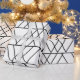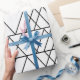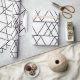 Este papel de embrulho tem um design moderno do século médio de triângulos brancos correndo horizontalmente feitos com linhas pretas.