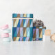 Papel de enrolamento numa grelha geométrica moderna do século Médio de triângulos em cores de vidro marinho de azul-cerulano, turquesa, aqua, marrom-café, bege e violeta mole
