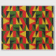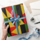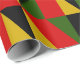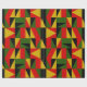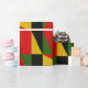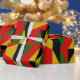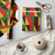 Este papel embrulho tem um design de História Negra de triângulos e retângulos em fazer dourado, vermelho, verde e preto.