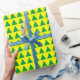 Papel De Presente Triângulos - Verde-Grama em Amarelo