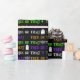 Trick ou Treat Halloween embrulhando papel com fantasmas e morcegos. as palavras Trick ou Tratat estão em cores clássicas do Halloween de laranja, verde ou roxo. Você pode fazer esse padrão de Halloween menor ou maior no papel de embrulho.