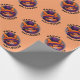 Gato Laranja com Bruxo Roxo... Feliz papel de enrolar do Dia das Bruxas. Um desenho de um gato laranja giro com um chapéu roxo e laranja. Feliz texto negro do Dia das Bruxas sobre fundo laranja.