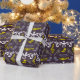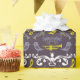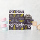 Diversão musical de Trompetes e pequenos pássaros em roxo e ouro.