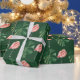 Traga um salto de paraíso tropical aos presentes para seus entes queridos, com este papel de embrulho de presente com um padrão de folha de monstera verde vibrante e um design flamingo rosa-chico.