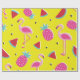 Papel De Presente tropical patternwith pink pineapple, flamingos, w