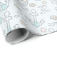Tubarão é uma garota embrulhando papel com âncoras, conchas, estrelas em rosa mole, aqua e coral.