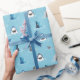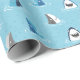 Papel De Presente Tubarões engraçados e bonitos em azul claro