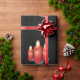 Pacote de presente exclusivo para os seus presentes de férias exclusivos. Uma série de velas vermelhas em um fundo preto com as palavras TODOS SÃO CALM. Por Scarebaby Design.