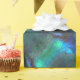 Azuis e verduras brilhantes e profundos, com um centro cintilante, representação da concha de abalone negro da Nova Zelândia.