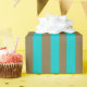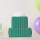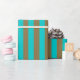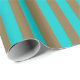 Papel de embrulho de presente com faixas azuis turquesa e douradas com lindas faixas azuis turquesa e douradas.