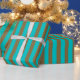 Papel De Presente Turquesa Azul e Faixa Dourada