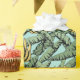 Este papel exótico de embalagem turquesa apresenta um padrão desenhado à mão de ilustrações de bananas amarelas e folhas de bananas verdes contra um fundo elegante de turquesa com detalhes de chuva verde.