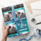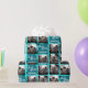 Molhando papel com um padrão de três fotos que você pode personalizar, junto com um plano de fundo muito elegante de turquesa. O impressão ao estilo mandala com formas hexagonais torna o papel diferente. Além disso, você pode colocar de quem é o presente, seja ele pessoal ou enviado pela sua família. O modelo está configurado para exibir as fotos em forma redonda.