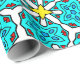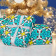 Papel De Presente Turquesa, Padrão Geométrico Amarelo e Vermelho