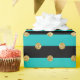 Turquesa - Faixa Azul-Aqua e Preta com Bolinhas de Folha Ouro Festa de aniversário Padrão.