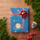 Um urso de ursinho bonito em um UFO dos pires de vôo está zumbindo ao redor no espaço. Papel de envolvimento adorável para seu astronauta pequeno!