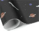 Ilustração original de uma nave espacial do UFO no espaço com os planetas e as estrelas disponíveis em produtos múltiplos.