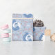 Raposa enrolada tem um snooze no seu lugar favorito de esconderijo de floresta! Uma gama de matizes azuis misturados com tons de coral sobre um fundo azul claro.