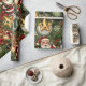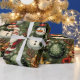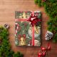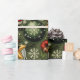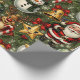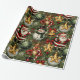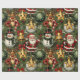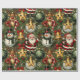 Este papel de embrulho de Natal apresenta um padrão repetitivo de personagens e ornamentos festivos em um fundo verde escuro. A design inclui: Jolly Santa Claus: Um Papai noel de pé com um sorriso amigável, acenando. Uma rena com nariz vermelho e uma cana doce. Snowman sorridente: Um boneco de neve a vestir um chapéu de topo e um cachecol verde. Ornamentos Felizes: Uma variedade de ornamentos grandes e sorridentes, incluindo uma estrela de ouro e uma bolha verde com design de floco de neve. O fundo está cheio de elementos clássicos de Natal como folhas sagradas, morangos vermelhos e flocos de neve brancos, criando um olhar detalhado e tradicional de férias.